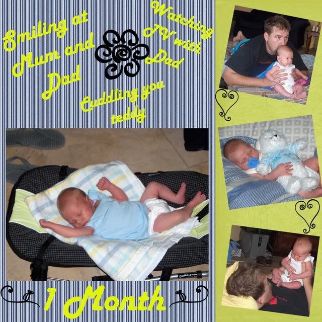 I have just learnt how to add text in adobe photoshop, so I included some of the things Nik could do at 1mth old, and his superman sleeping pose. He loves his teddy, we call it BB, he still sleeps with it now and has since birth. I often walk in at night to check on him and find his arms locked around BB.