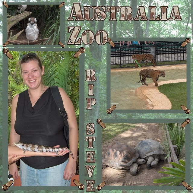 I was getting sick of doing just Nik pages so here is one of when we went to Australia Zoo early last year, I was six months pregnant at the time with big ass ankles, lol. I couldn't do an Australia Zoo (or as we call it Crikey Land) page without a tribute to Steve....at least he went out doing what he loved, we can only hope that is our way out.......