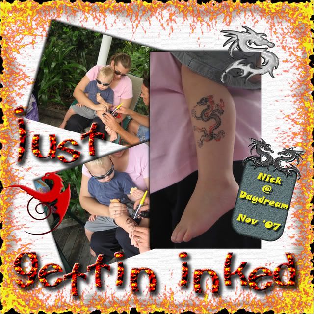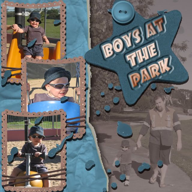 Mostly everything you are gonna see here are pages of my son....I am pretty new to the ol' digi-scrapbooking so would love some gentle helpfull criticisms!!!