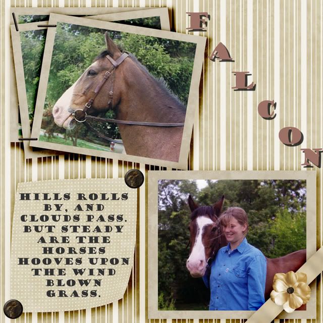 This page was made for the alphabet challenge....letter F. This is Falcon, my horse I had through high school. We spent a lot of time together and he made my bad days tolerable.