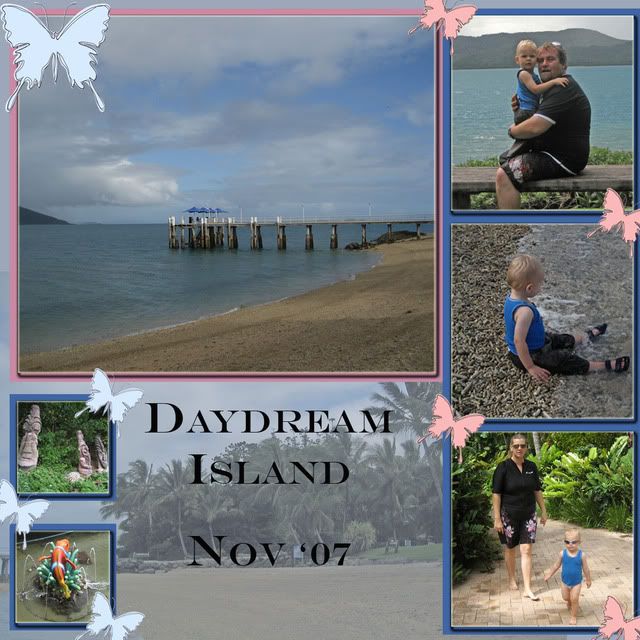 This is the holiday we had at Daydream Island, despite it raining everyday, the photo's look great. This page was made for a competition where the frame template was set and we designed a page accordingly